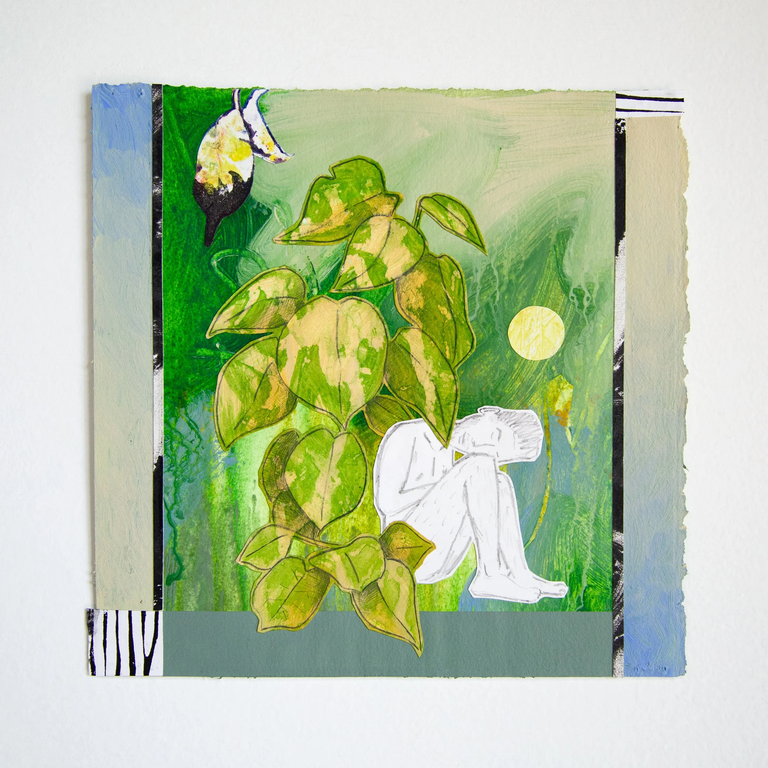 Rooted II, 2024 7" x 5" Acrylic, Ink, and Collage on Canvas